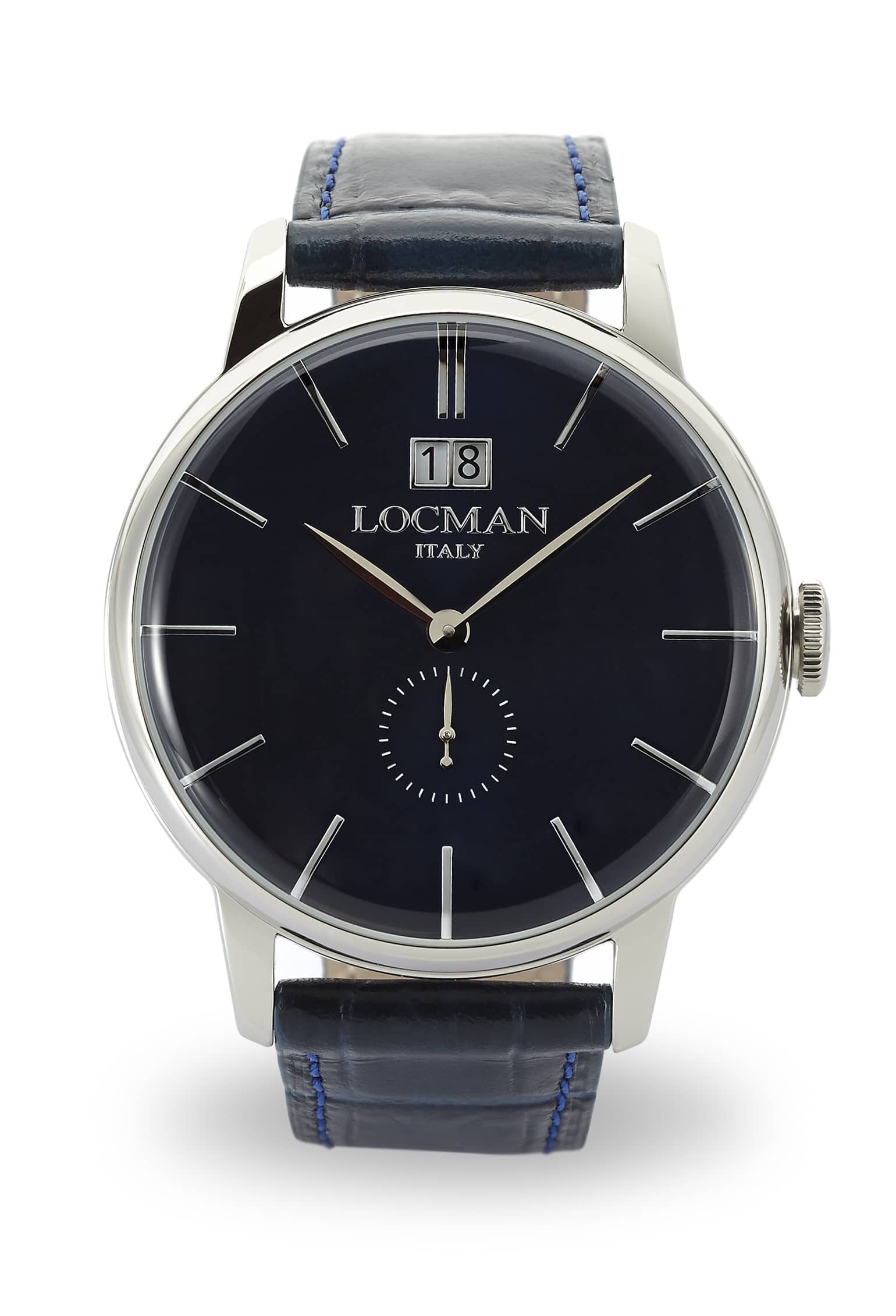 Orologio da uomo Locman 1960 con movimento al quarzo solo tempo con secondiera e datario. Cassa in acciaio diametro 40 mm. Quadrante blu con inidici a bastone in acciaio e verto zaffiro. Cinturino in pelle blu. Impermeabilità 5 ATM. Due anni di garanzia ufficiale Locman. Referenza:0252V02-00BLNKPB.