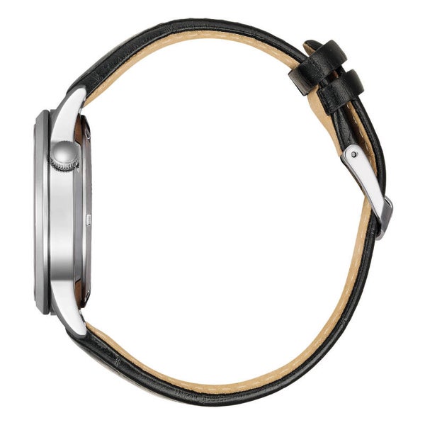 Orologio Citizen Automatico Collezione Meccanico solo tempo. Quadrante nero e indici a bastone in acciaio rose-gold con oblò trasparente con macchinario a vista. Cassa in acciaio di diametro 40 mm e vetro zaffiro. Cinturino in pelle nera con chiusura a fibbia. Impermeabilità water resistant. Cinque anni di garanzia ufficiale Citizen. Referenza: NH9131-14E.