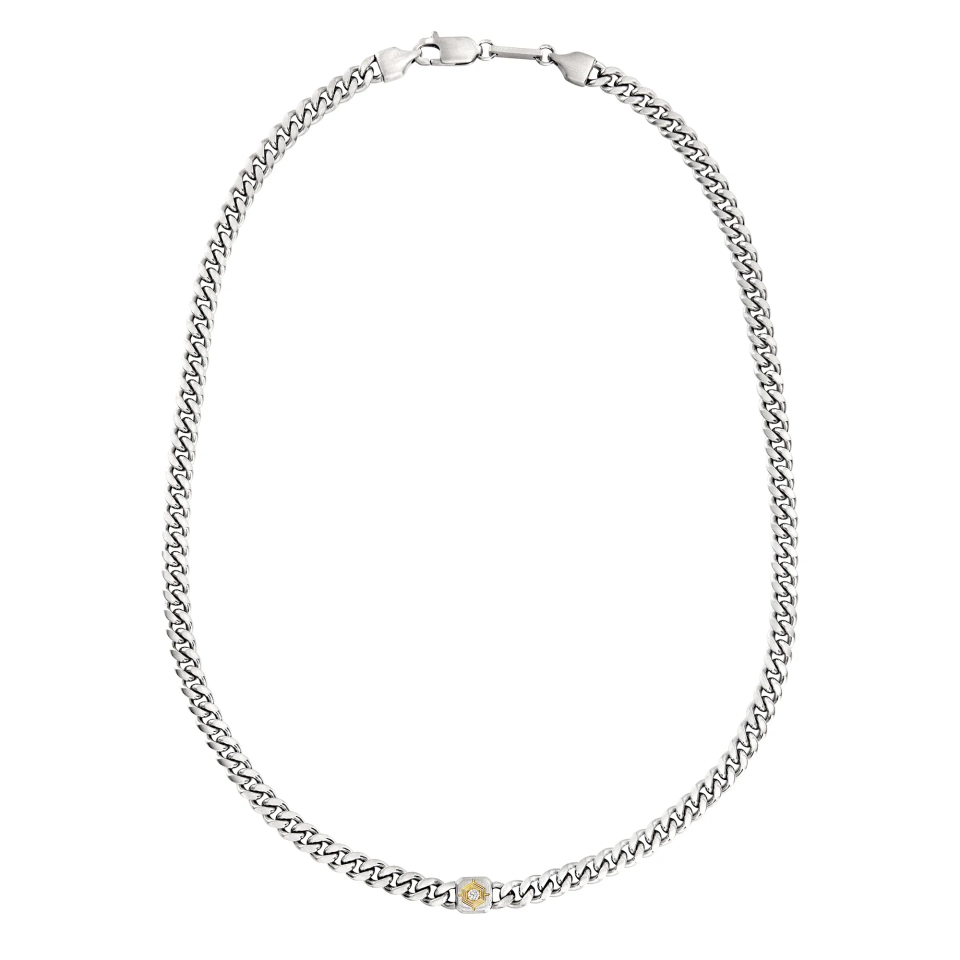 Collana Uomo Breil Cross Roads. Collana con catena groumette in acciaio, con finish satinato è caratterizzata da un elemento centrale bicolour dalle linee geometriche che accoglie un cubic zirconia bianco incastonato. Chiusura a moschettone. Lunghezza 52 cm. Due anni di garanzia ufficiale Breil. Referenza: TJ3814