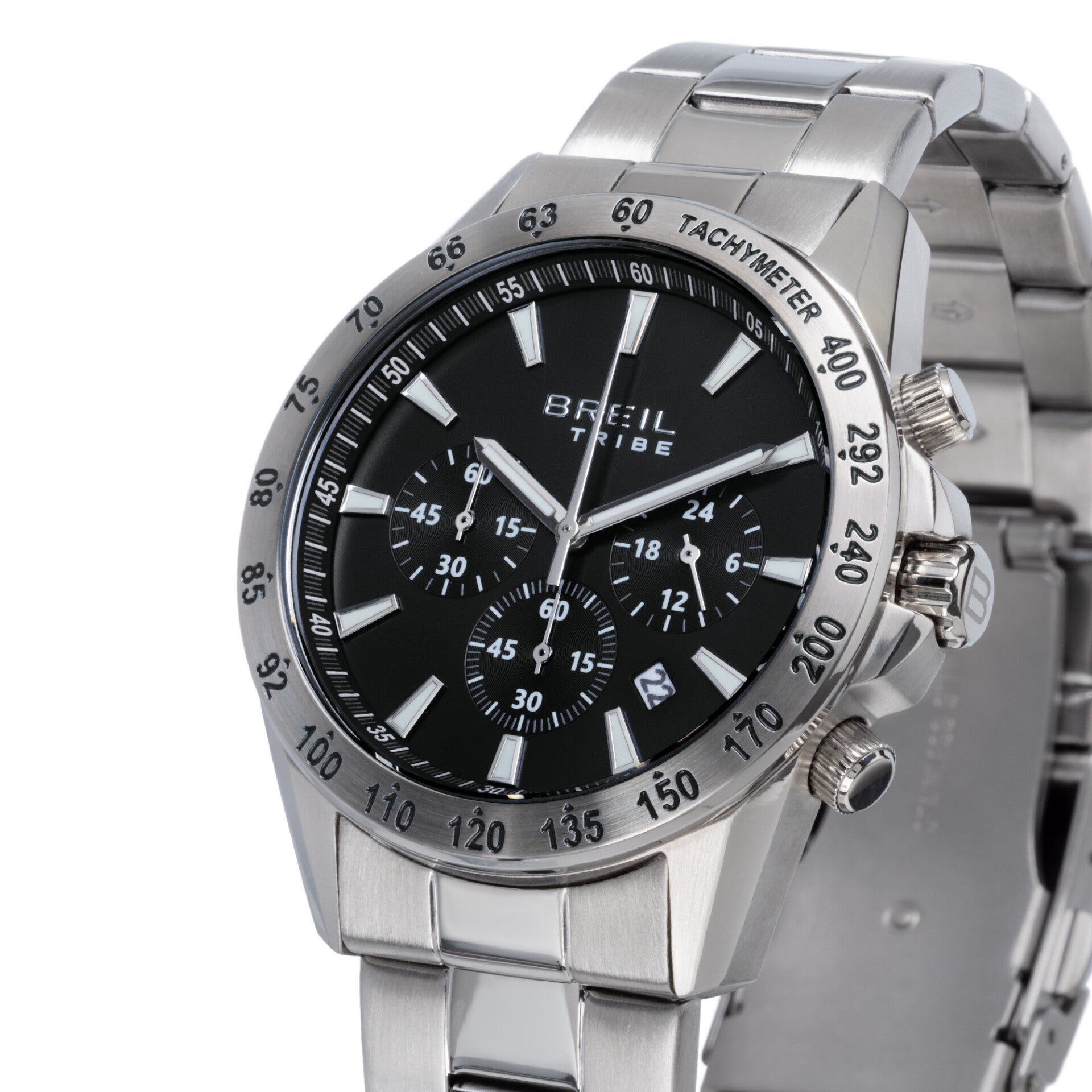 Orologio Uomo Breil Sideline. Orologio cronografo al quarzo. Quadrante nero con indici a bastone e ghiera tachimetrica . Cassa in acciaio, diametro 43 mm, vetro minerale antiriflesso permette la perfetta lettura dell'ora. Cinturino in acciaio e chiusura deployante. Impermeabilità 10 ATM. Due anni di garanzia ufficiale Breil. Referenza: EW0777.