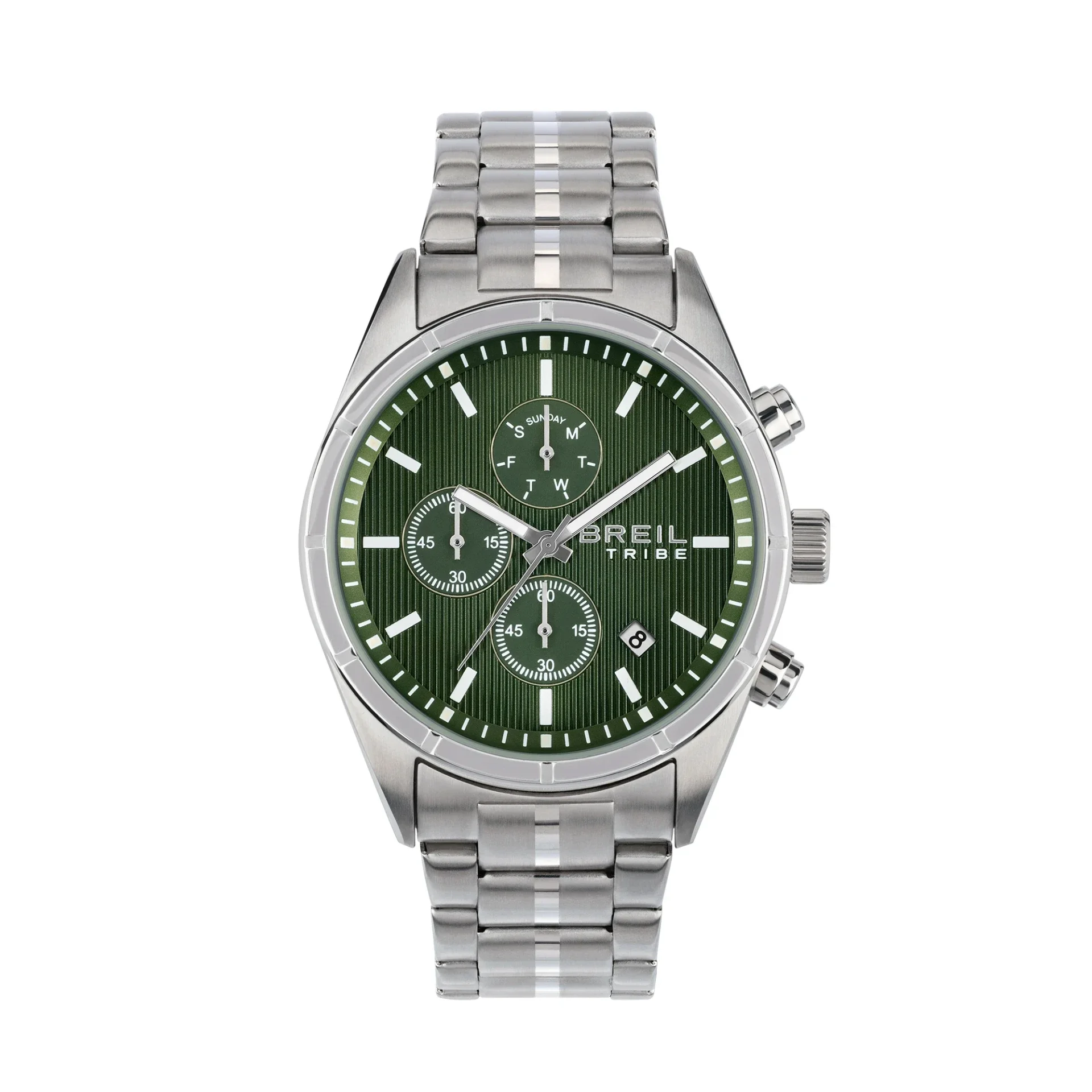 Orologio Uomo Breil Captain. Orologio cronografo con datario e movimento al quarzo. Quadrante verde e indici a bastone. Cassa in acciaio, diametro 42 mm. Vetro minerale. Cinturino in acciaio e chiusura deployante. Impermeabilità 10 ATM. Due anni di garanzia ufficiale Breil. Referenza: EW0796.